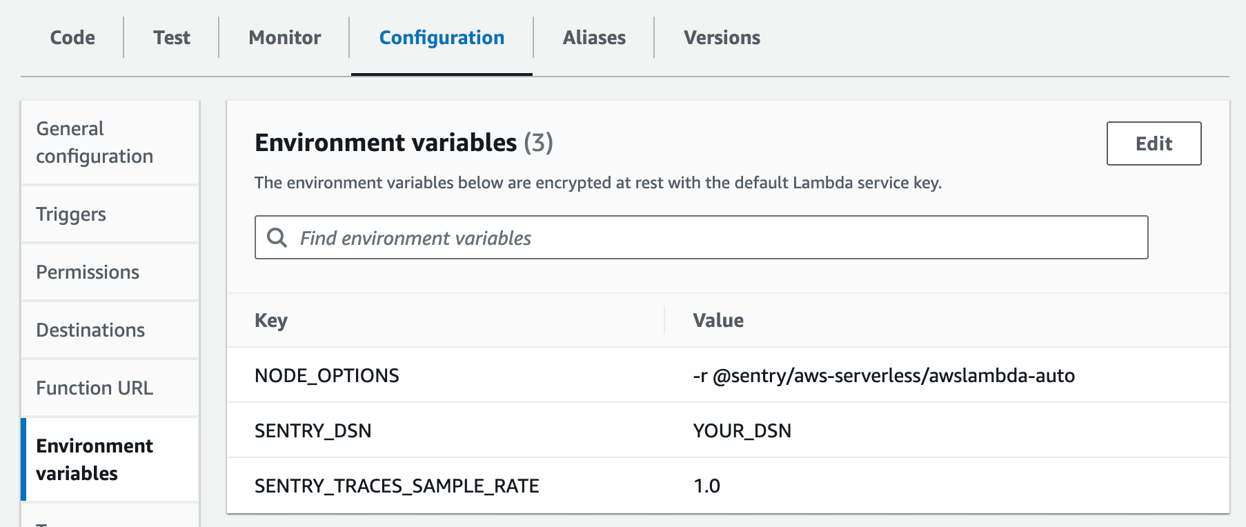 NODE_OPTIONS="-r @sentry/serverless/dist/awslambda-auto"